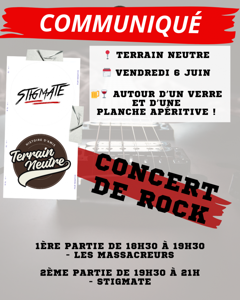 🎤 Concert annulé ce soir sur la Terrasse de Terrain Neutre en raison des orages et risques de grêle.